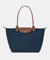 Carry your essentials in style with this spacious navy blue tote, thoughtfully designed for everyday versatility. Measuring 48 cm across the top and tapering to a 30 cm base, this bag offers generous capacity while maintaining a refined silhouette. Rich leather accents add durability and sophistication to the classic canvas construction. With a comfortable 21–22 cm handle drop, it sits perfectly on your shoulder for all-day wear. Standing 28 cm tall with a 20 cm depth, this tote transitions seamlessly from work to weekend, making it the reliable companion you'll reach for again and again.